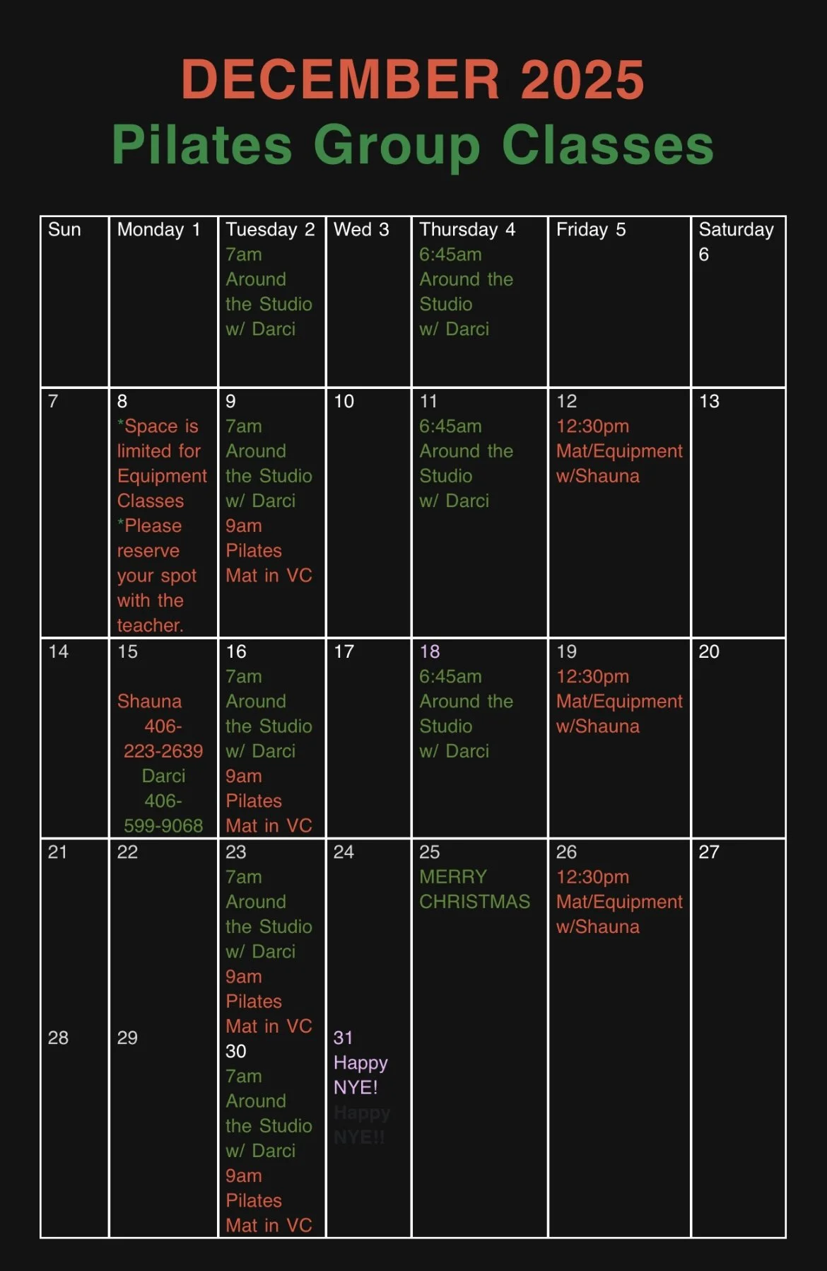 * Space is limited for classes, please reserve your spot!